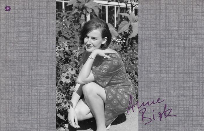 Durch Klicken auf die Pfeiltasten rechts und links bzw. durch Wischen auf Touch-Screen-Geräten können Sie durch die Foto-Galerie von Anne Birk blättern. Diese Galerie enthält sowohl biographische als auch bibliographische Bilder – wobei letztere tendenziell thematisch einsortiert wurden. Eine streng chronologische Übersicht aller bibliographischen Werke der Autorin finden Sie auf dieser Seite unterhalb der biographischen Vita-Meilensteine.